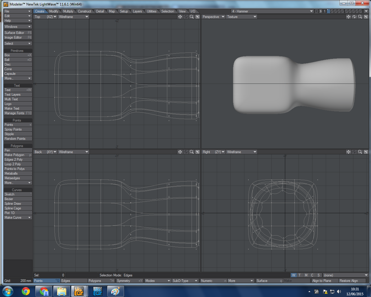 Box modelling is getting a primary shape, then manipulating it to create a shape. Such as, a hammer.
